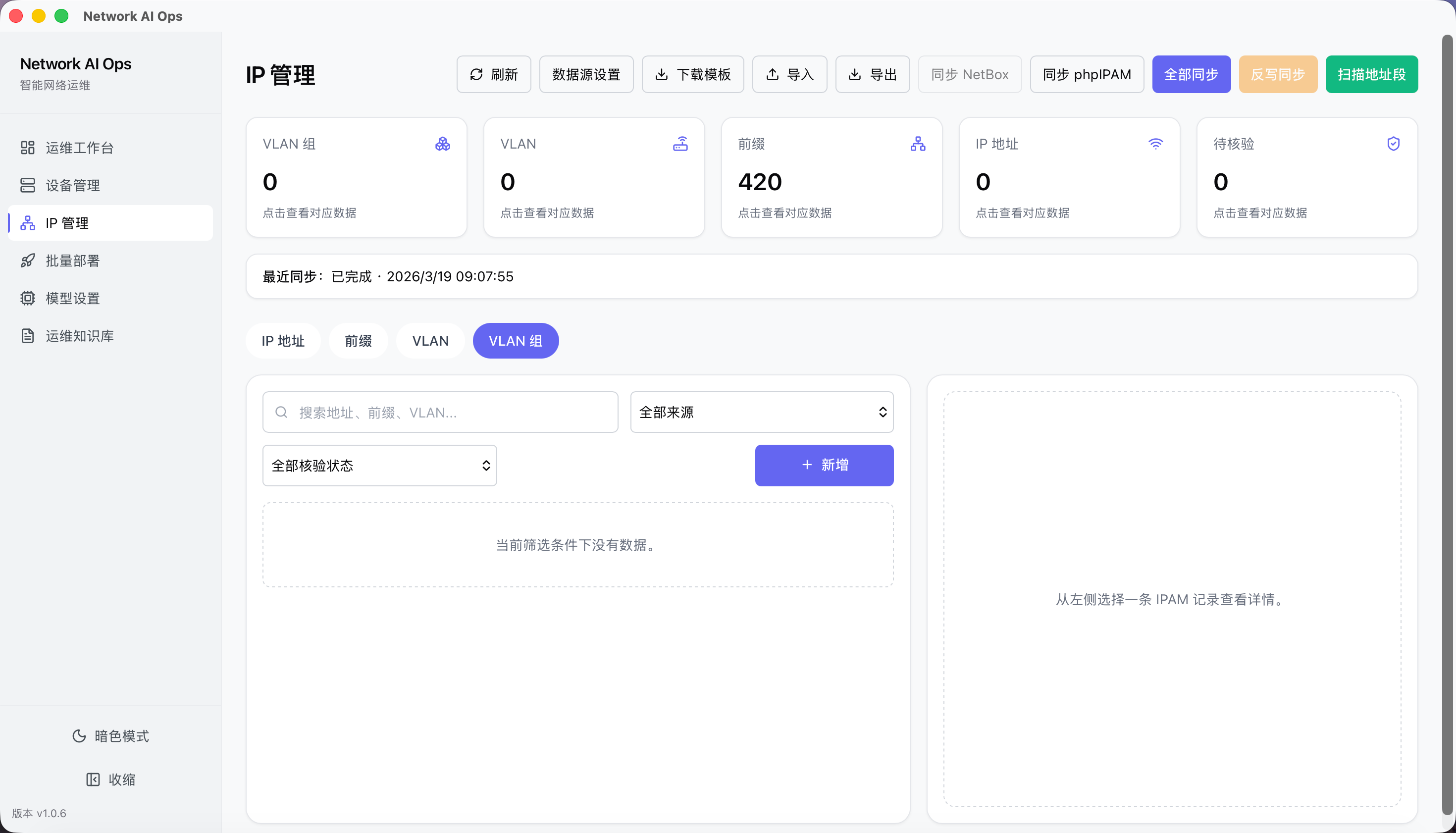 以概览指标、标签页和详情侧栏组织 IPAM 工作流。
